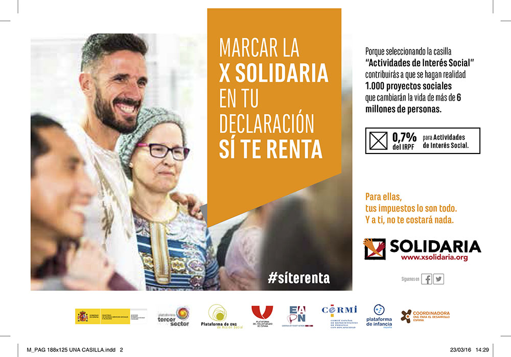 Por ello, este año animamos a todas las personas a marcar la X Solidaria y a practicar la Rentaterapia, el ejercicio que sienta bien a la persona contribuyente y a los 7 millones de personas que lo necesitan.