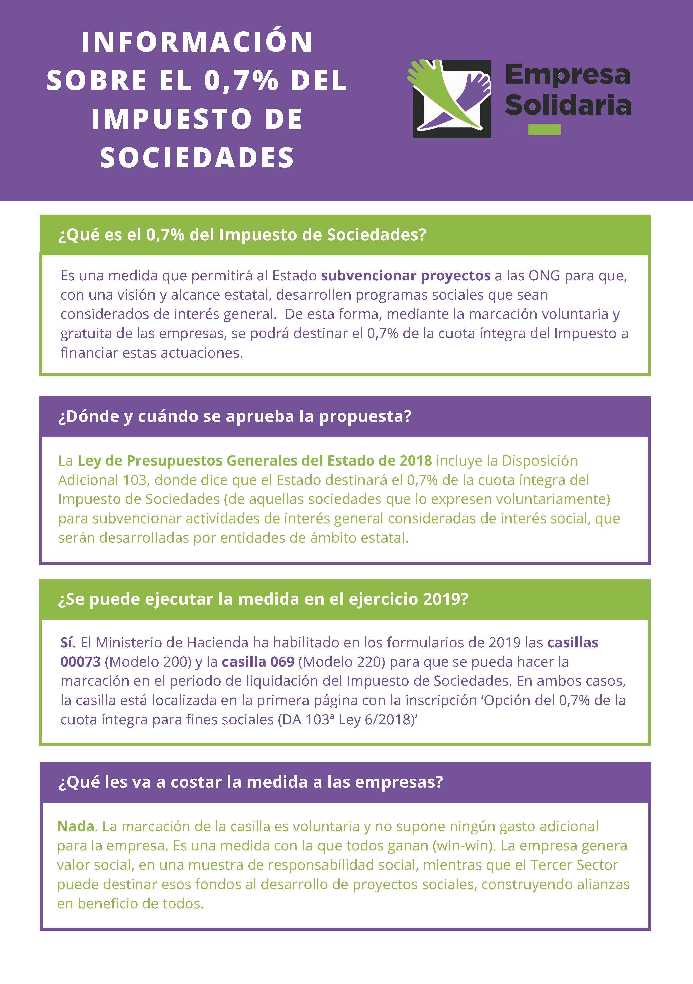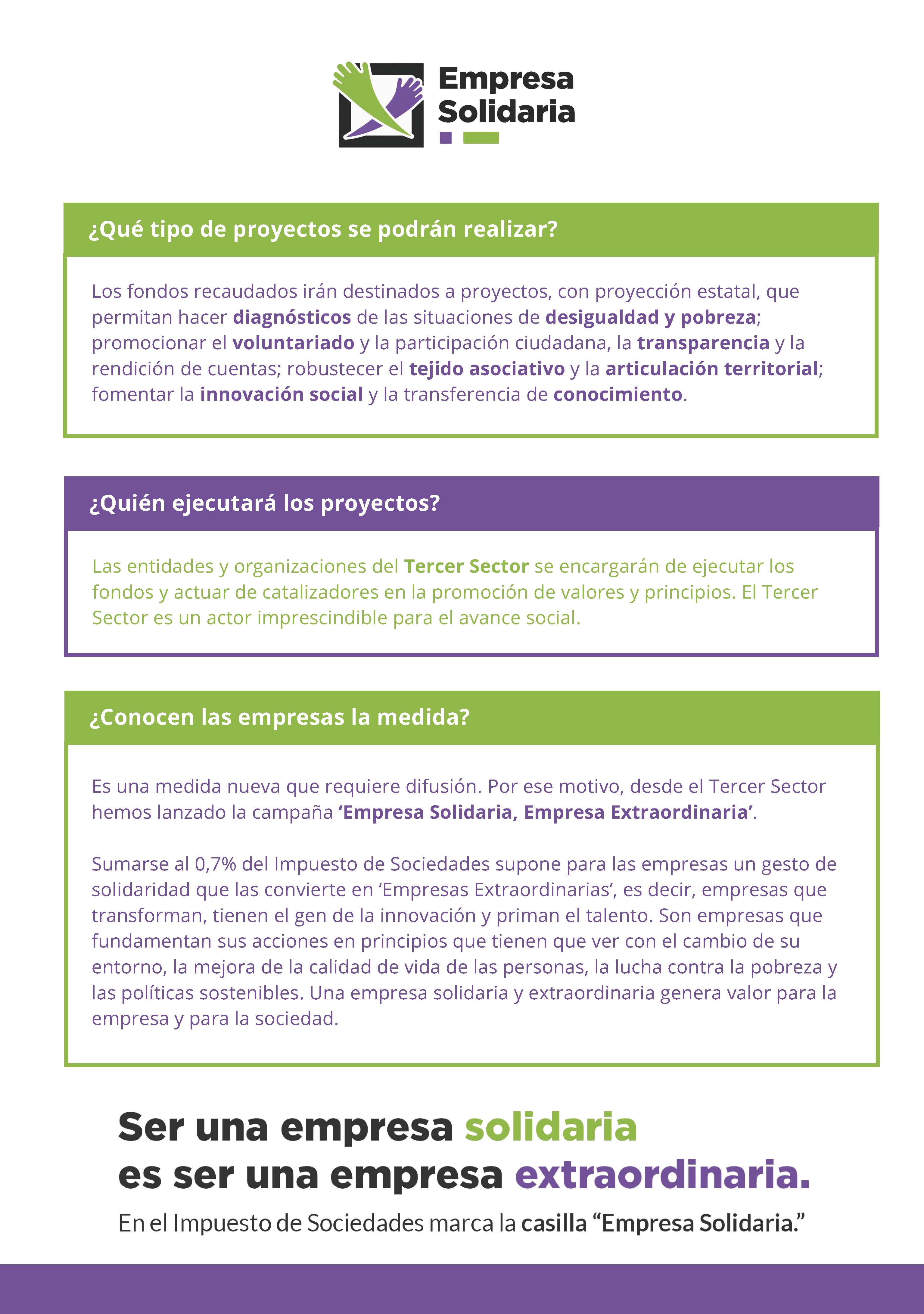 Ser una empresa solidaria es ser una empresa extraordinaria. En el Impuesto de Sociedades marca la casilla "Empresa Solidaria".