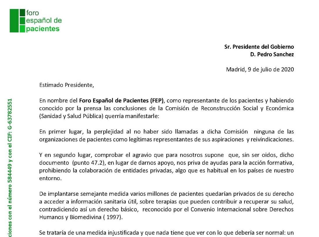 COMUNICADO OFICIAL INSTITUTO PROPATIENS: El punto 47.2 del Dictamen de la Comisión para la Reconstrucción Social y Económica va en sentido contrario de las recomendaciones de los distintos grupos de la comunidad europea sobre la importancia de fortalecer la presencia de las Asociaciones de Pacientes.